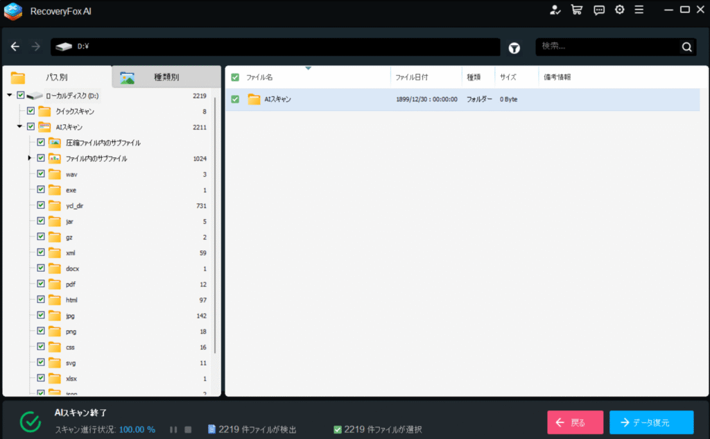 因みにファイル名やフォルダ構成に関しては、「RecoveryFox AI」が自動的に生成したものです。