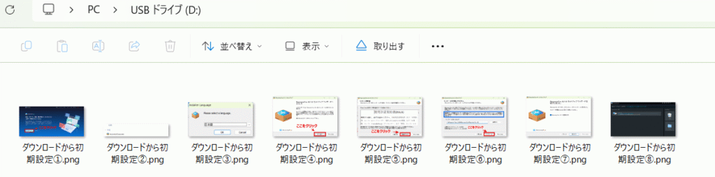 ①今回使用するUSBにこの記事で使用している画像の一部をコピーして保存します。