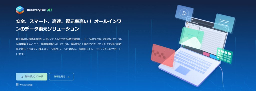 今回は、そんなあなたにピッタリなソフト「RecoveryFox AI」を紹介していきます。